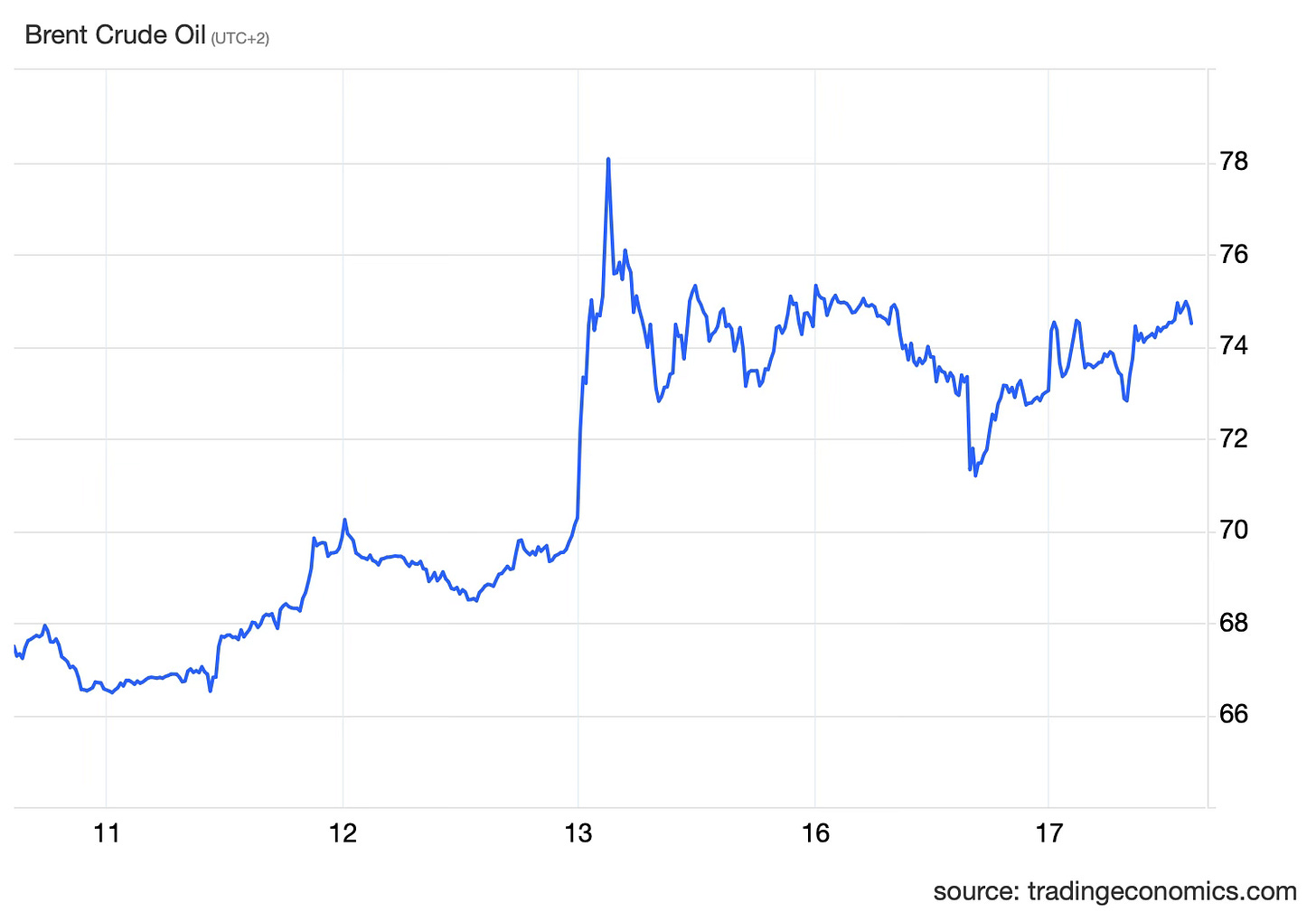 Nella giornata di venerdì il primo ciclo di attacchi reciproci tra Israele e Iran ha scatenato un rally sui prezzi con un aumento del Brent dai 69 ai 75 dollari al barile, sceso a circa 73 dollari nella giornata di lunedì e risalito a 74 martedì. Sono i valori più alti da aprile, che hanno invertito il trend ribassista. Per avere un termine di paragone, nel 2024 il prezzo medio è stato di 80,5 dollari, l'anno precedente di 82,5. Se le quotazioni dovessero attestarsi tra i 73-79 dollari delle previsioni a breve termine, per le compagnie statunitensi tornerà profittevole tenere la costosa produzione di shale oil ai livelli record degli ultimi anni.