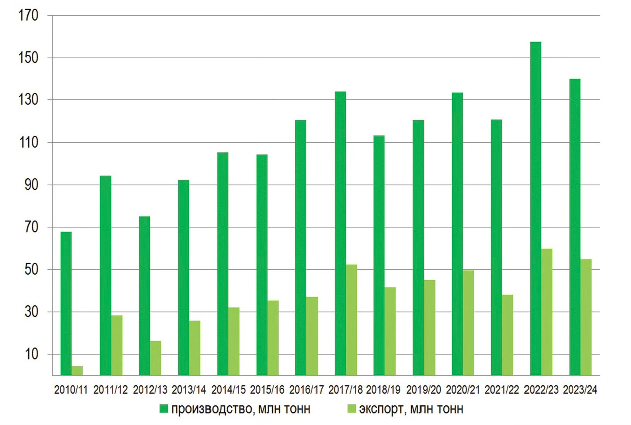 Nonostante questo la Russia ha raggiunto nel 2024 un altro record storico nelle esportazioni di grano, sebbene i volumi dei raccolti dell'annata 2023/24 siano stati inferiori alle ottime stagioni precedenti, che tengono conto anche della produzione nei territori dell'Ucraina occupata. L'anno scorso Mosca ha infatti rubato almeno 2,2 milioni di tonnellate di grano ucraino, un dato illustrato con precisione nei documenti del Ministero dell'Agricoltura russo sotto la dicitura «raccolto nelle nuove regioni».